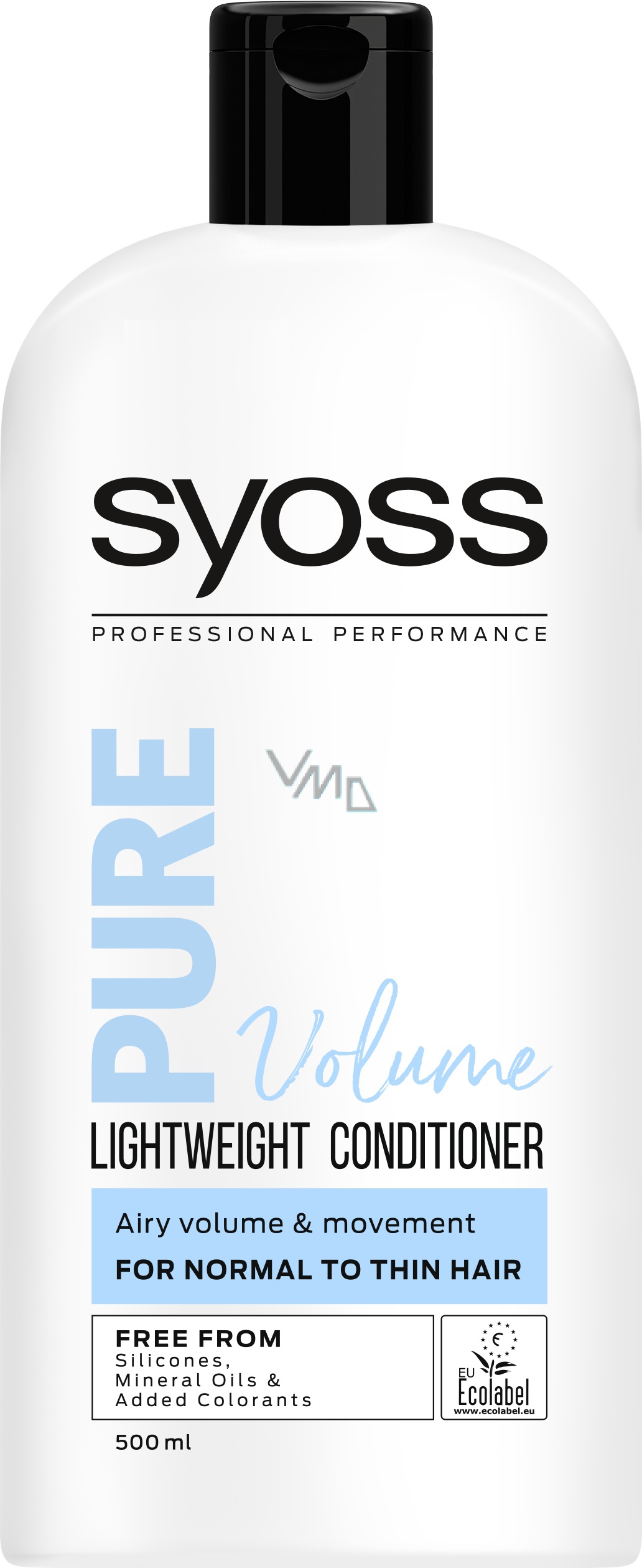 Syoss Balzám Pure Volume pro slabé vlasy 500 ml pure Volume lehký balzám pro slabé vlasy. Syoss Pure Volume lehký balzám zlepšuje rozčesatelnost a zanechává nadýchaný objem, pohyb a pružnost. Bez silikonů, parabenů, minerálních olejů a umělých barviv. Hypoalergenní kvalita testována a ověřená ECARF. Certifikováno ekoznačkou EU.