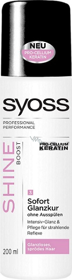 SYOSS SHINE BOOST, prémiová řada vlasové péče pro normální, oslabené vlasy bez lesku. Profesionální receptura SYOSS SHINE BOOST poskytne vašim vlasům zářivý lesk a uhladí je. Jemně myje lámavé vlasy bez lesku. Uhlazuje vlasovou strukturu. Dodává zářivý lesk a vyhlazuje vlasovou strukturu.