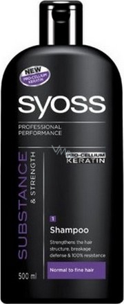 Nový Syoss Pro Cellium Keratin - vysoce účinná receptura posiluje vlasové vlákno a zanechává vlasy krásné - jako ze salonu. Šampon Substance & Strength pro normální až jemné vlasy posiluje vlasovou strukturu hluboko uvnitř chrání vlasy před lámáním.