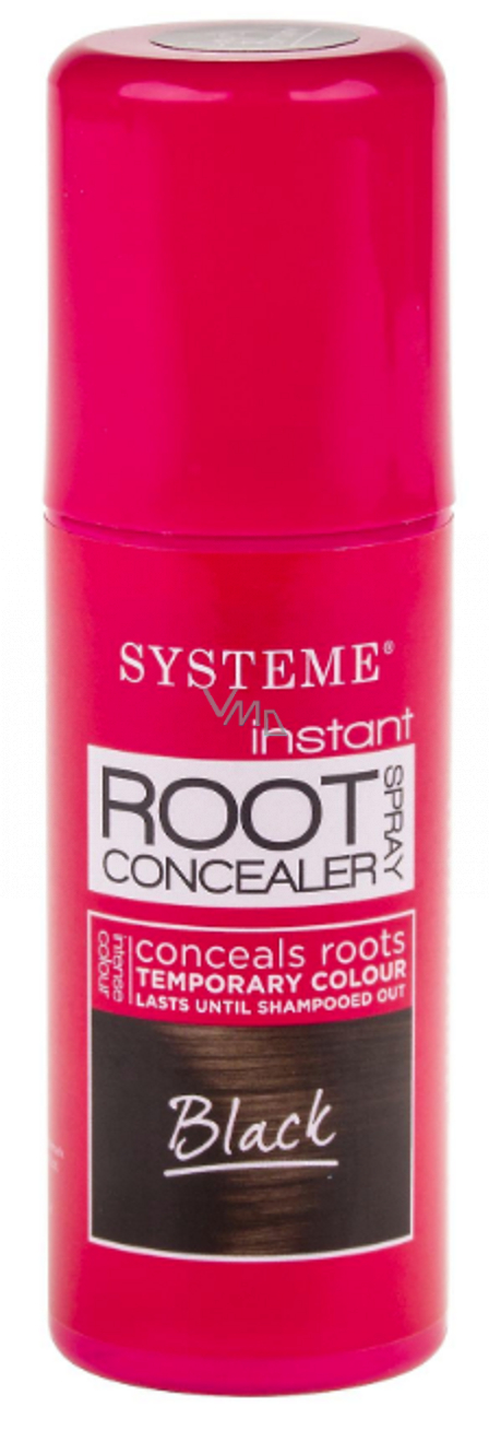 Systeme Root Concealer černý sprej rychle překryje šediny a šedé odrosty ve vlasech, ale nenahrazuje barvení vlasů. Používá se na suché vlasy. Přípravek obsahuje přírodní minerální pigmenty. Je rychleschnoucí a potu odolný. Vymývá se šamponem.