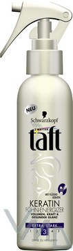 Oživující sprej Taft Keratin Complete se stupněm fixace 3 nabízí vysoce koncentrované složení, které chrání jemné vlasy před teplem, dodává vlasům objem, sílu a zdravý lesk. Výsledkem je viditelný objem, síla, zdravý lesk a 48hodinové zpevnění. A vlasy se neslepují.