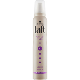 Pianka do włosów Taft Perfect Flex to pierwsza seria stylizacyjna z płynnym elastyną, która zapewnia kontrolę i doskonałą elastyczność fryzury. Nie obciąża włosów i pomaga chronić je przed uszkodzeniem spowodowanym ciepłem podczas suszenia.