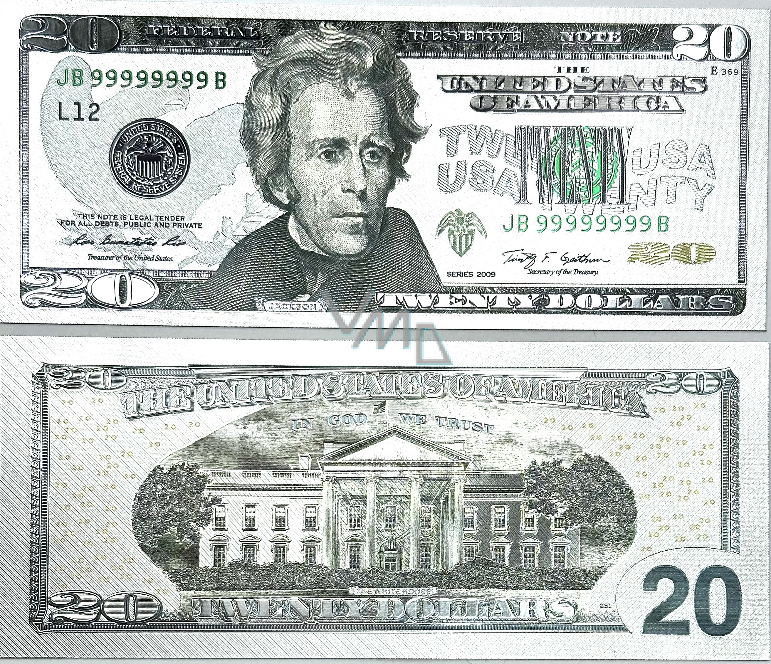 Przyciągający 20-dolarowy banknot dla podróżników i osób, które chcą przyciągać więcej pieniędzy do swojego portfela, mieszkania, biura.