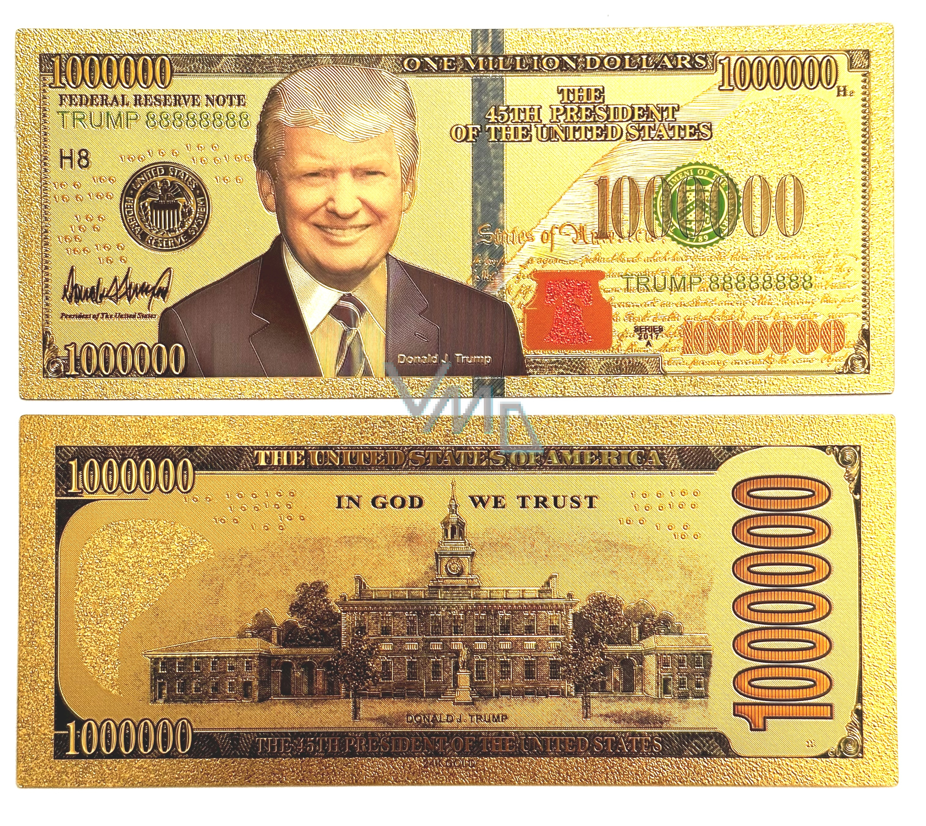 Złoty banknot o nominale 1 000 000 dolarów dla podróżnych i osób pragnących przyciągnąć więcej pieniędzy do swojego portfela, mieszkania, biura.