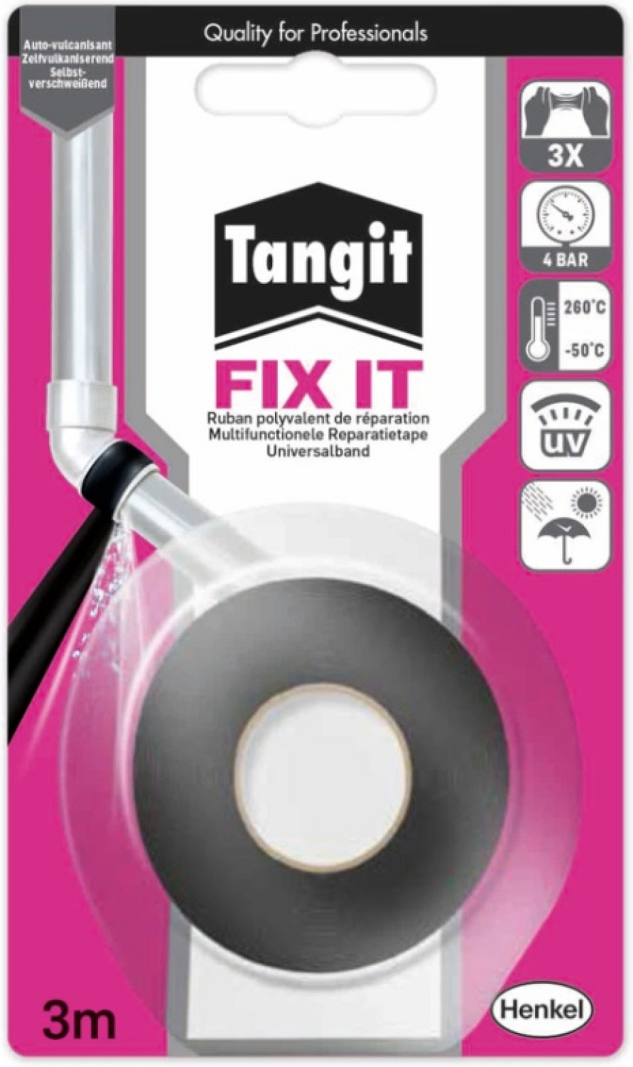 TANGIT Fix It to uniwersalna taśma uszczelniająca silikonowa, która natychmiast rozwiązuje problemy z wyciekami i nieszczelnościami w domu, warsztacie oraz w terenie. Dzięki technologii samowulkanizacji taśma mocno połączy się sama ze sobą bez użycia klejów lub narzędzi i tworzy elastyczną, wodoodporną i odporną na ciepło powłokę wokół uszkodzonego miejsca.