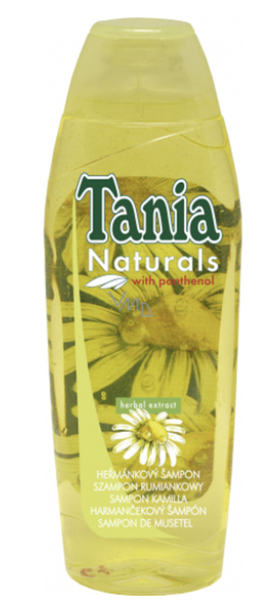 Tania Naturals heřmánkový šampon s bylinnými extrakty je určený pro každodenní použití. Obsahuje panthenol, který proniká do vlasů a vyživuje je od kořínků po konečky. Vlasům dodá zářivý vzhled, hebkost a lesk. Vyzkoušejte šampony na vlasy řady Tania a dopřejte svým vlasům tu nejjemnější péči.
