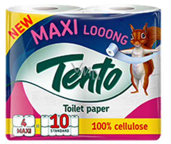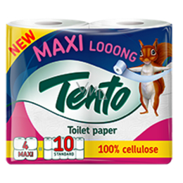 Tento Maxi Looong toaletní papír, možnost, která Vám vydrží tak dlooouho. Maxi looong patří mezi produktové inovace v řadě 2-vrstvých toaletních papírů Tento. Je vyroben ze 100% celulózy s více než 44 metry v roli zaručuje ekonomickou výhodnost produktu.