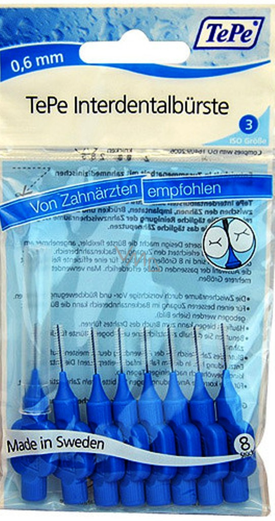 TePe mają specjalnie zaprojektowane delikatne włókna, które zapewniają efektywne czyszczenie i długą żywotność. Są odpowiednie dla osób z wrażliwymi dziąsłami, wrażliwymi zębami, zapaleniem dziąseł, paradontozą lub z implantami. Każda szczoteczka posiada drucik o średnicy 0,6 mm pokryty materiałem syntetycznym, aby zapewnić maksymalną ochronę dziąseł. Szczoteczka międzyzębowa jest ważnym elementem higieny jamy ustnej, ponieważ szczoteczka do zębów nie jest w stanie dostatecznie oczyścić trudno dostępnych zanieczyszczeń między zębami. Specjalnie dobrane włókna i unikalny drucik zapewnią Ci efektywne czyszczenie i długotrwałość szczoteczki. Te delikatne, wysokiej jakości szczoteczki międzyzębowe nie łamią się łatwo!
