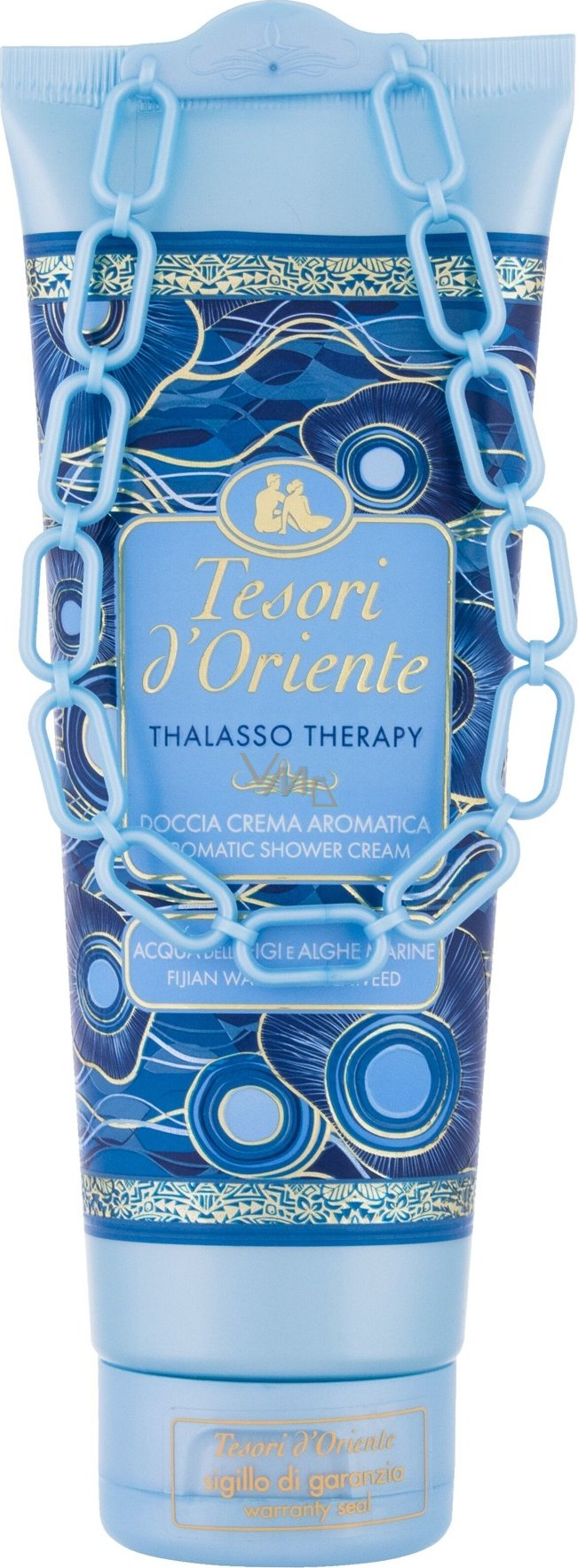 Lázeňský rituál Thalasso. Krémový sprchový gel Tesori d'Oriente Doccia Crema Thalasso Therapy Acqua delle Figi e Alghe Marine kombinuje čistící účinek vody z Fidži s revitalizačními a hydratačními účinky mořských řas.
