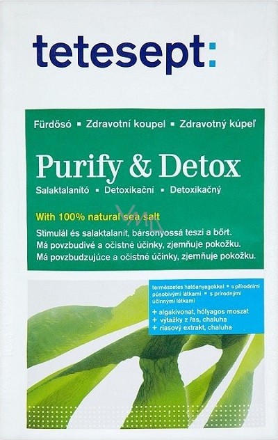 Detoxikační mořská sůl a extrakt z mořských řas povzbuzují prokrvení a látkovou výměnu. Tím pomáhají odvést škodliviny z těla a přirozeným způsobem zkrášlit postavu. Cenný extrakt z hnědých řas provlhčí a zkrášlí pokožku, která bude sametově hebká a měkká. Při pravidelném používání se zvýší vylučování škodlivin z těla.