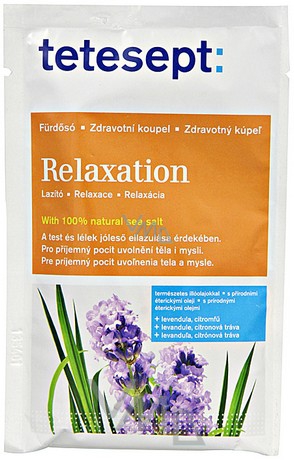 Tetesept Relaxační koupelová mořská sůl je koupelová přísada pro uvolnění celého těla a relaxaci při stresu a přetížení se 100% přírodní mořskou solí. Přináší pocit pohody a fyzicky i psychicky uvolňuje. Vychutnejte si blahodárnou koupel s mořskou solí s léčivou silou přírodních éterických olejů – přizpůsobenou relaxaci celého těla. Ucítíte, jak se v koupeli psychicky i fyzicky uvolňujete a aromatická vůně éterických olejů vám dovolí zbavit se stresu. Budete se cítit podstatně lépe, odpočinutě a vyrovnaně.