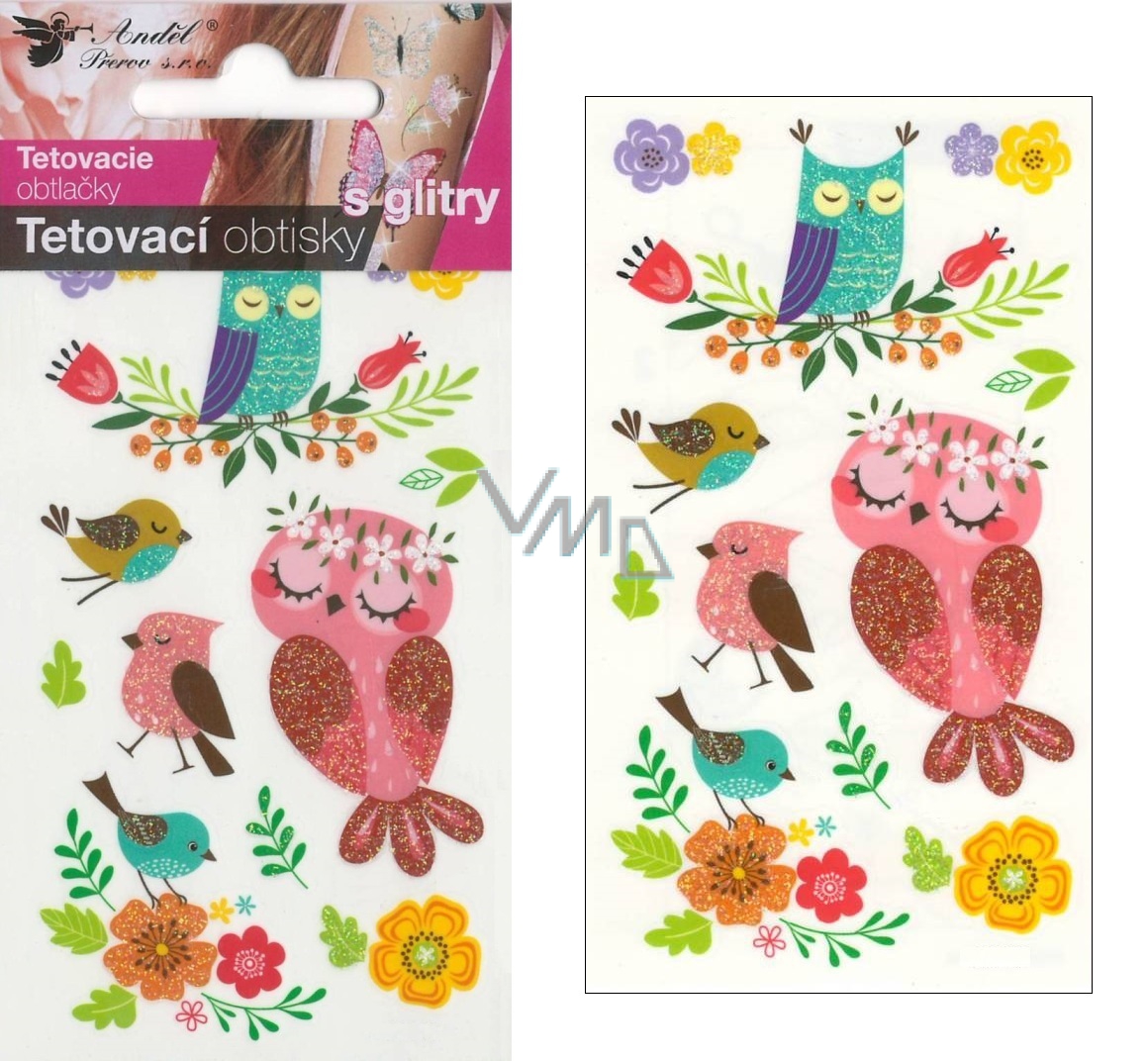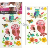Tetovací obtisky barevné s glitry Sovy 10,5 x 6 cm