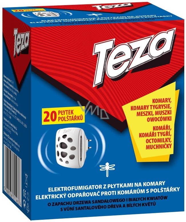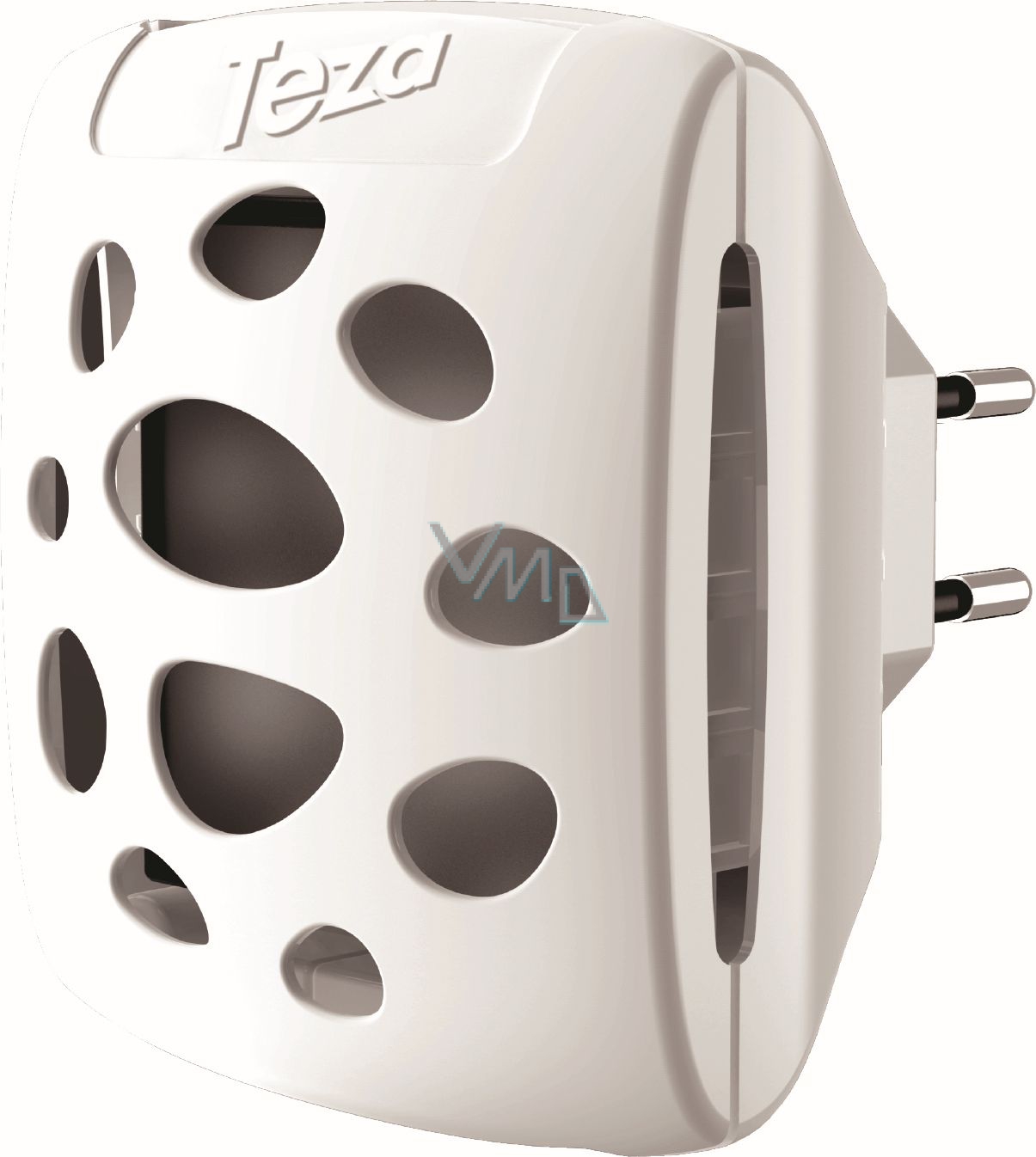 Pokud se chcete účinně zbavit dotěrných komárů, pak vyzkoušejte elektrický odpuzovač hmyzu Teza. Elegantní odpařovač je vybavený 20 insekticidními výměnnými destičkami, z nichž každá vydrží působit až 8 hodin. Jedna destička vás tak ochrání před obtěžujícím hmyzem po celou noc. Designový odpařovač proti komárům vám zajistí ochranu nejen před hmyzem, který nově vlétne do vaší domácnosti, ale zneškodní i ty hmyzí vetřelce, kteří vás už doma obtěžují. Poradí si s komáry, včetně těch tygřích, s mouchami a muchničkami a dokonce zvládne i nezničitelné octomilky. Pro lidské členy domácnosti má nachystanou jemnou vůni santalového dřeva a bílých květů.