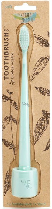 The Natural Family Co. Soft Bio zubní kartáček a stojánek Mátový z pryskyřice a kukuřičného škrobu