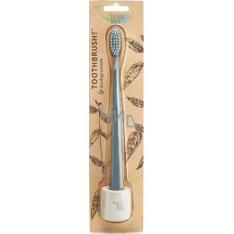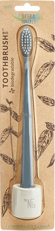 Bio zubní kartáček s měkkými nylonovými štětinami a rukojetí vyrobenou z kukuřičného škrobu neobsahujícího GMO. Obal a rukojeť jsou biologicky odbouratelné, kompostovatelné. Bez BPA.
