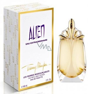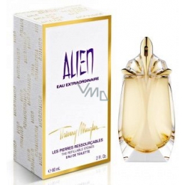Toaletní voda pro ženy Mugler Alien Eau Extraordinaire je jedinečná a okouzlující vůně, která navíc dodá vaší pokožce dokonale zlatavý nádech s pomocí malých třpytivých částeček.