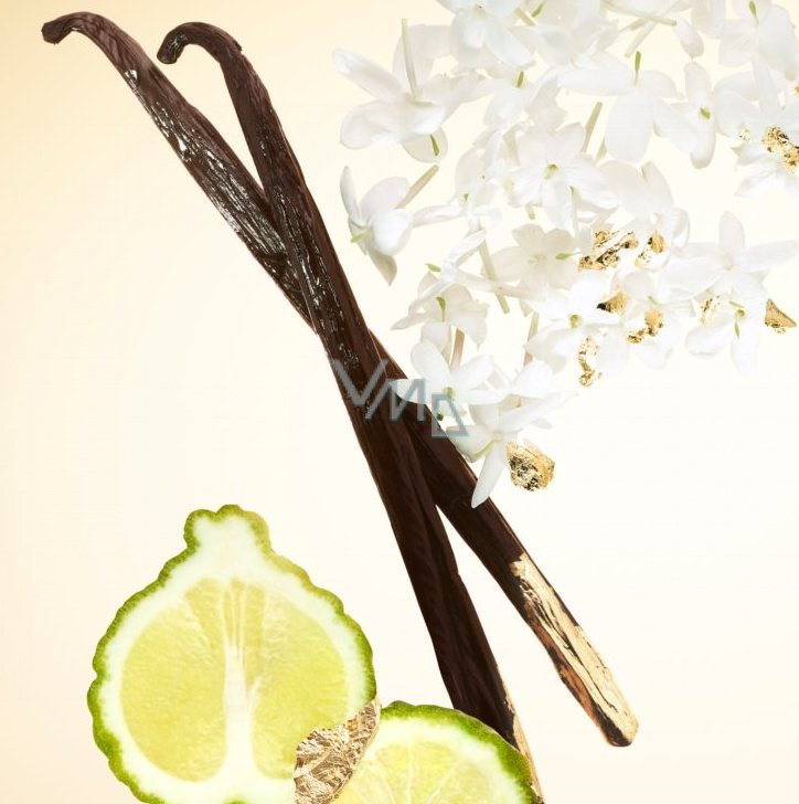 Od prvního přivonění po doznění posledního tónu se můžete těšit na trojúrovňový zážitek v podobě zářivého, zázračného a nakonec rozumového zjevení. To první zajistí jiskřivé tóny citrusu bergamotu s kokosovým podkresem. Poté se nejvíce projeví bílé květy jasmínu – symbol ženskosti a smyslnosti – a otočník. V poslední fázi se projeví vanilka a kašmeran vyjadřující mír a naději.