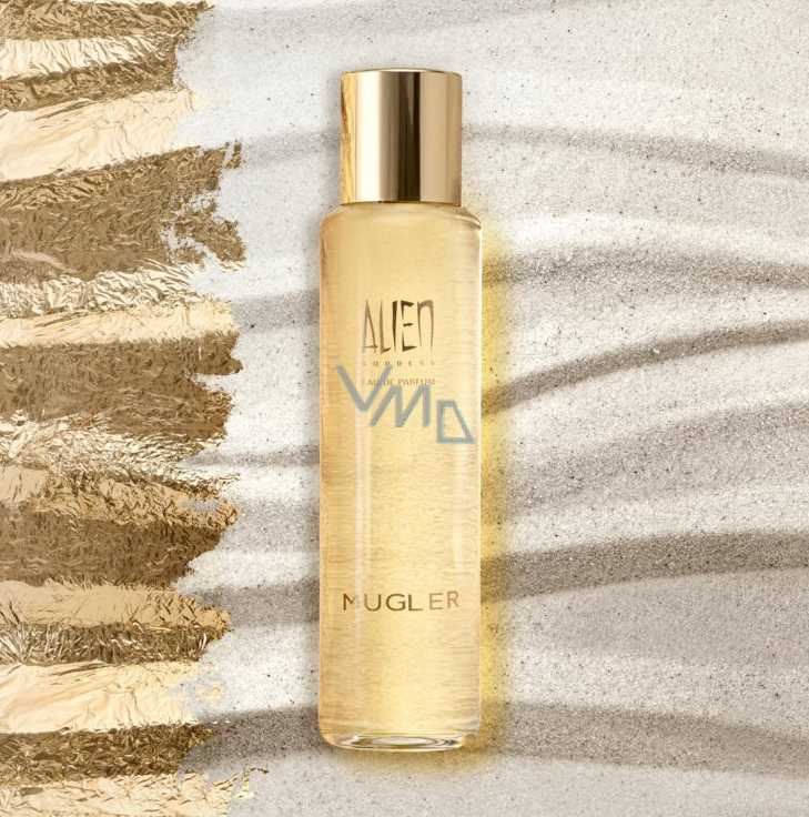 Vůně Mugler Alien Goddess je příslibem ženskosti a naděje, ukrývající se ve flakonu. Ten je zahalen do odstínů zlata a metalické lakování evokuje východ slunce. Zářivou vonnou kompozici tím dokonale podtrhuje.