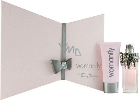 Vůně Mugler Womanity je vyjádřením myšlenky současného propojeného, zároveň však různorodého světa. Upozorňuje na propojení všech žen ve veškeré jejich rozmanitosti a odlišnosti. Nekonečné stránky ženské duše symbolizuje jedinečným spojením sladkého, pikantního a dřevitého současně.