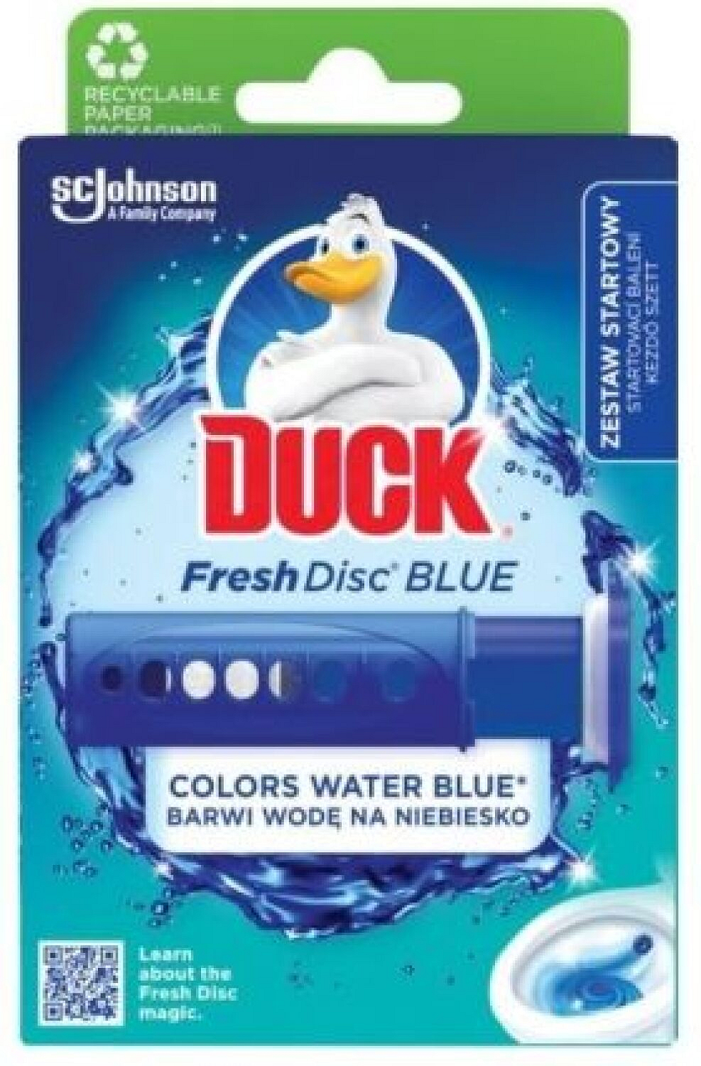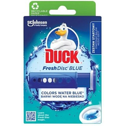 Środek czyszczący WC Duck Fresh Discs Blue oferuje innowacyjne rozwiązanie w porównaniu do klasycznych bloków WC. Ten żelowy środek czyszczący z niebieskim barwnikiem barwi wodę podczas każdego spłukania, co skutecznie pomaga w walce z osadzaniem się kamienia wodnego i zapewnia długotrwałą świeżość. Dzięki swojej specjalnej formule zapewnia długotrwały efekt i jednocześnie oferuje higieniczny sposób aplikacji. Żelowy dysk Duck Fresh Discs Blue utrzymuje twoją toaletę świeżą i czystą przez długi czas.