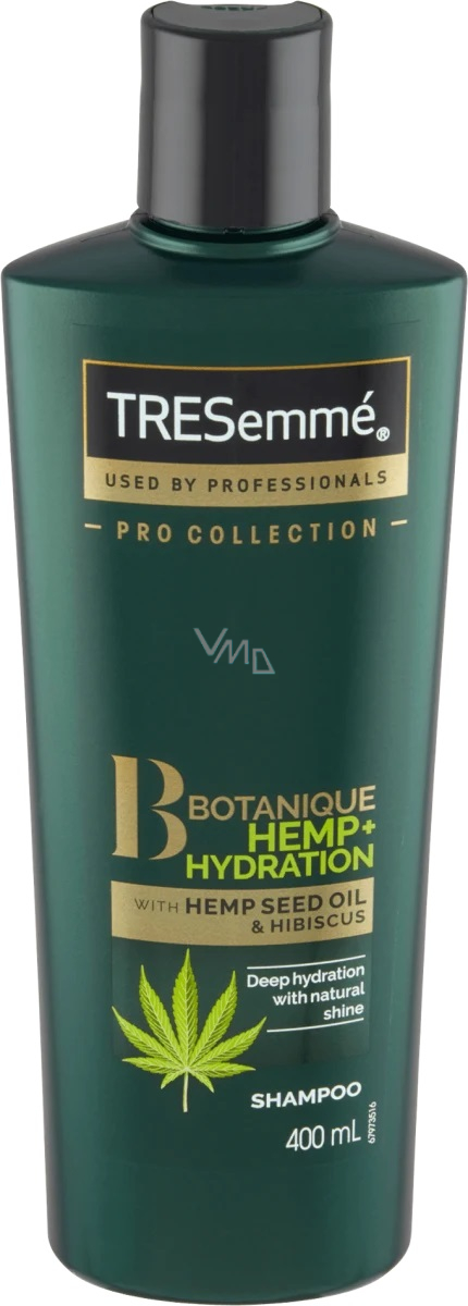 TRESemmé Pro Collection šampon na vlasy Botanique Hemp+Hydration poskytuje vašim vlasům čistou hydrataci a výživu v podobě přirozené zářivosti vlasů, kterou jistě nepřehlédne nikdo ve vašem okolí. Šampon bez obsahu parabenů a barviv je obohacen o konopný olej a květy ibišku. Toužíte po hydratovaných a zároveň zdravě vypadajících vlasech? Nyní můžete mít obojí!