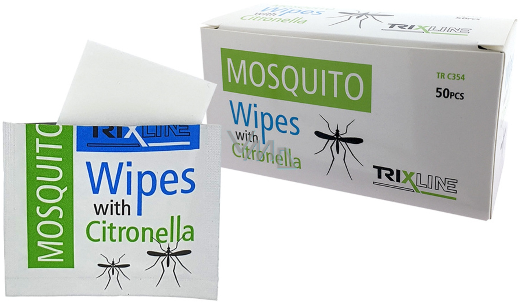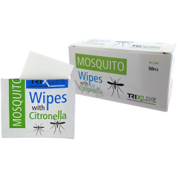 Nawilżane chusteczki Trixline TR C 354 Mosquito z cytryną, które skutecznie chronią przed komarami. Zapach wyparuje po 4 godzinach.