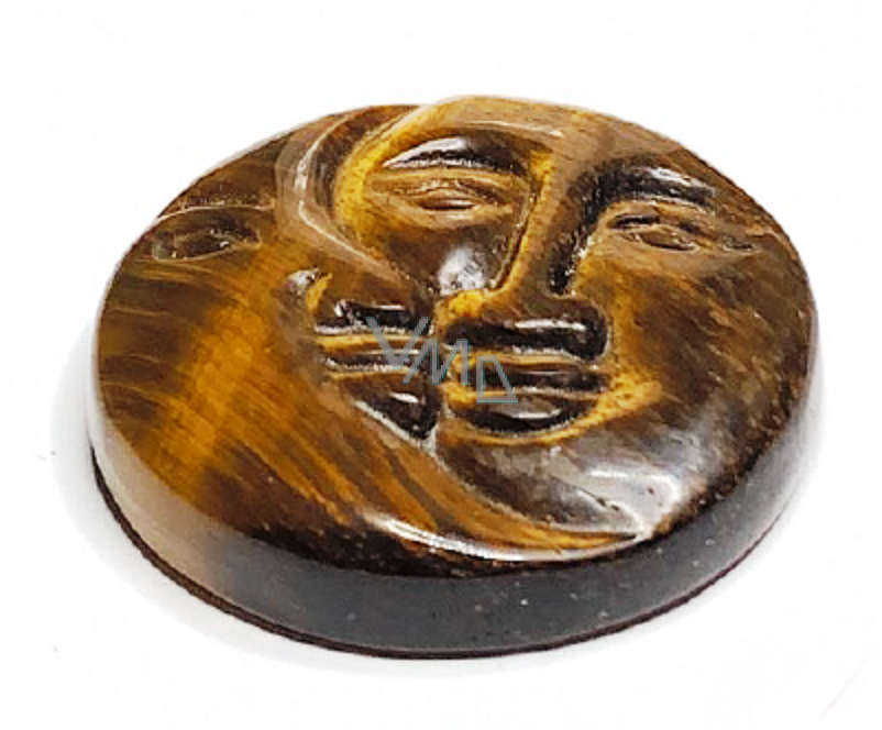 Tygří oko tvář slunce a měsíc ručně vyřezávaný přírodní kámen 5 cm, kámen slunce a země, přináší štěstí a bohatství