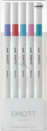 Samotny nazwa EMOTT jest odwołaniem do słowa EMOTIONAL, co również sugeruje, że jest to świetny liner do wyrażania uczuć. Jest idealny do tworzenia notatek w stylowych kolorach, które wyrażają nasze emocje. To ekskluzywny, czysty liner o grubości końcówki 0,4 mm. Mimo że ma igłową końcówkę, podczas używania się nie łamie, ponieważ jest wyposażony w zewnętrzną osłonę ochronną. Dzięki końcówce pisanie tym długopisem jest ekstra lekkie. Nie przebija przez papier, dlatego nadaje się również do pisania lub dekorowania. Wyprodukowano w Japonii.