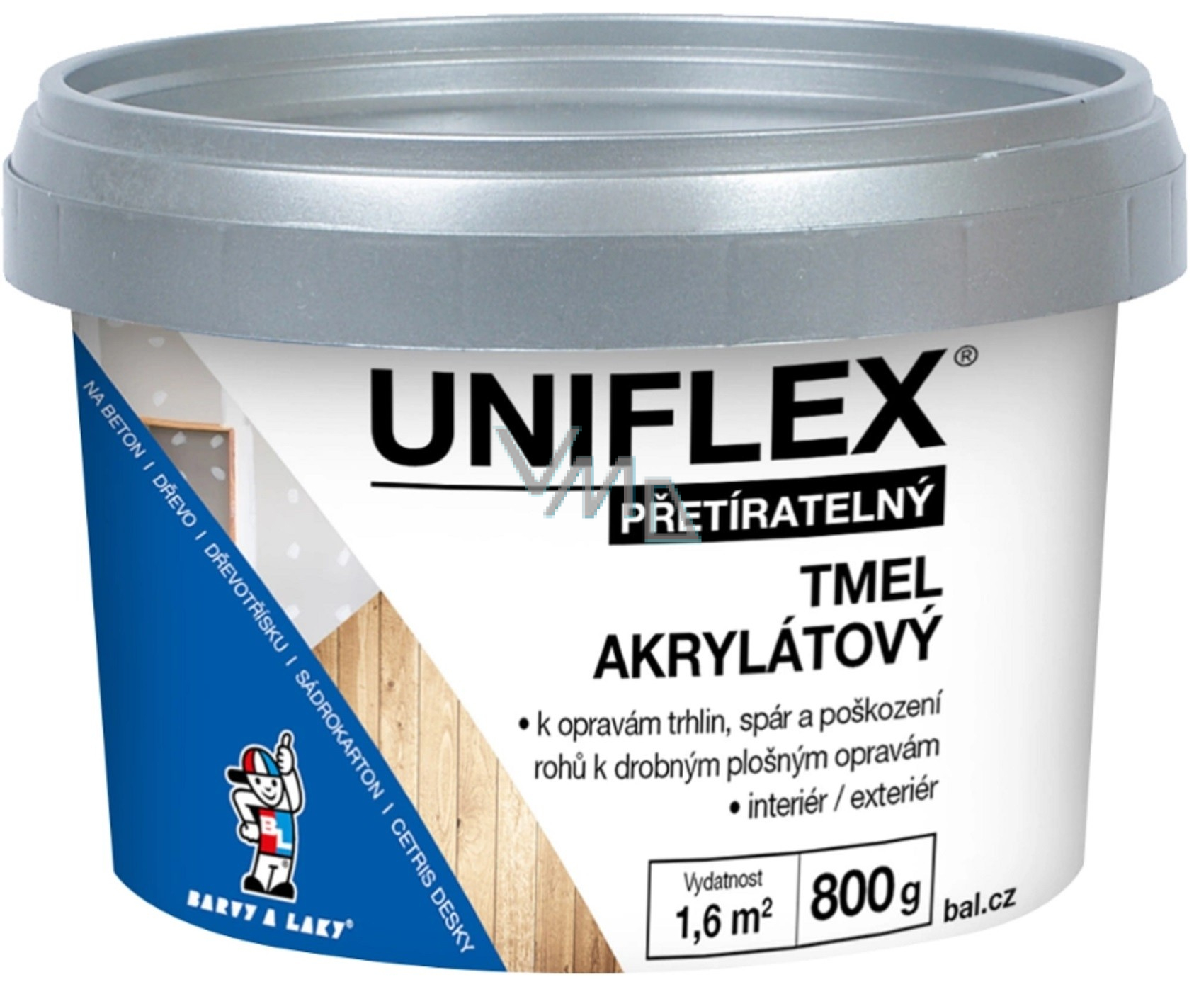 Uniflex akrylátový pastovitý tmel je vysoce kvalitní produkt určený pro drobné opravy středních a větších nerovností na různých površích. Tento univerzální tmel nebo lepidlo se vyznačuje vynikající přilnavostí na kov, ocel, kámen, beton, dřevo a další materiály, což z něj činí ideální volbu pro širokou škálu aplikací jak v interiéru, tak v exteriéru.