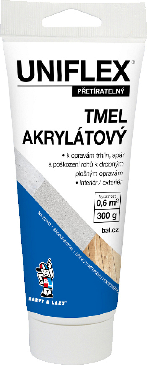 Akrylátový pastovitý tmel k drobným opravám mur, gips kartonu i drewna w wnętrzach i na zewnątrz. Uniflex tmel czy klej przeznaczony do wypełniania średnich i większych nierówności, doskonała przyczepność na większości powierzchni, przede wszystkim na metal, stal, kamień, beton, drewno itd., możliwość malowania, do zastosowań wewnętrznych i zewnętrznych.