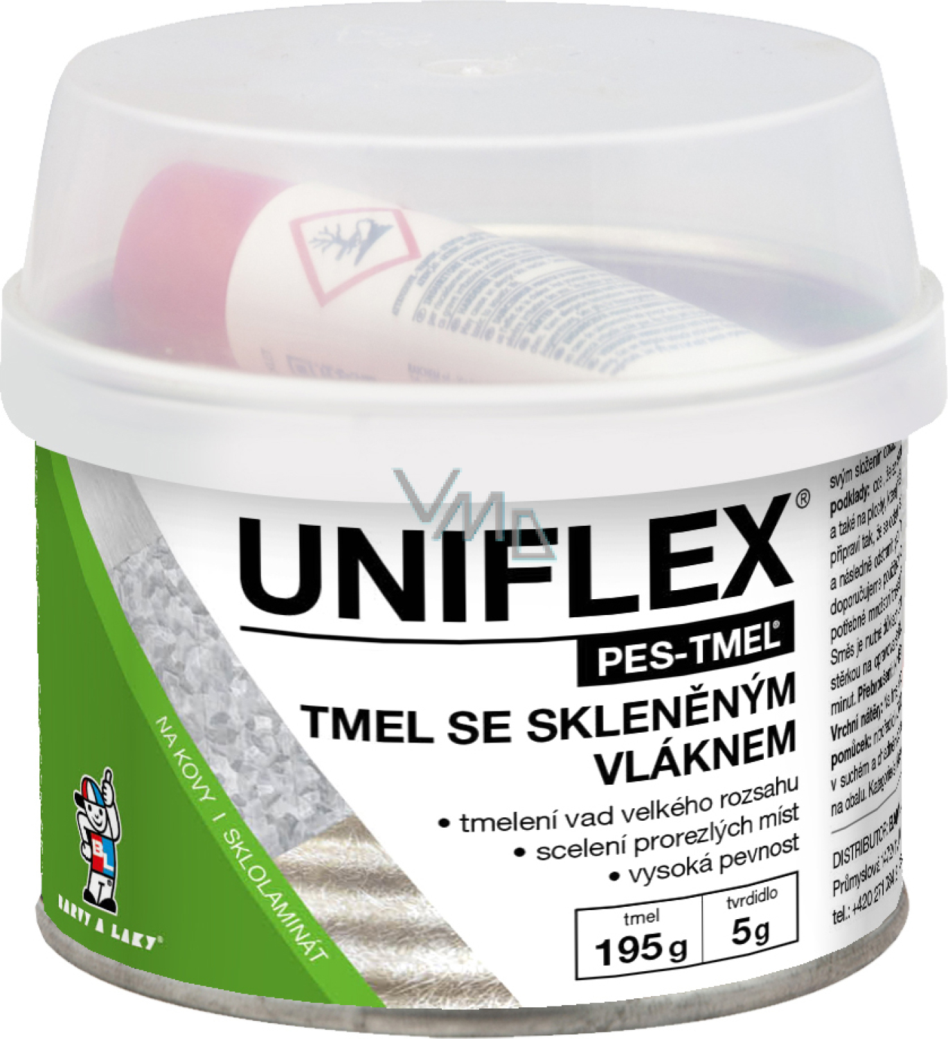 Dwuskładnikowy tmel poliesterowy przeznaczony do wypełniania szczególnie dużych zakresów lub do mostkowania słabych lub zardzewiałych miejsc i dziur. Wysoka zawartość włókna szklanego. Doskonała przyczepność do metalu i włóknokleju. Wysoka zdolność wypełniania - możliwość utworzenia solidnej, mocnej warstwy. Łatwa obróbka i ulepszone właściwości przy szlifowaniu. Tmel nie może być stosowany do wypełniania miejsc, które mają bezpośredni kontakt z żywnością i wodą pitną. Nie nadaje się do podłoży ocynkowanych i aluminiowych.