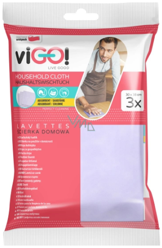Sada 3 kusů kuchyňských hadříků Vigo! je ideální pro rychlý a efektivní úklid nejen v kuchyni, ale v celé domácnosti. Díky skvělé savosti, kterou zajišťuje kvalitní složení 60 % Viskózy a 40 % dalších materiálů, snadno odstraníte nečistoty a rozlité tekutiny. Hadříky jsou odolné a praktické, nezbytné pro každou domácnost.