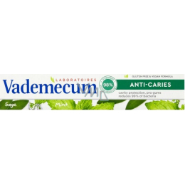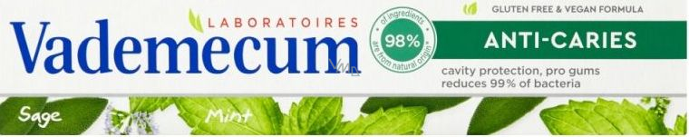 Receptura Vademecum Anti Caries & Naturel s rostlinnými výtažky a klinicky ověřenou kombinací vitamínů zklidňuje podrážděné dásně a pomáhá zabránit zánětu dásní. Díky fluoridu jsou vaše zuby odolnější a chráněny před zubním kazem. Účinek ochrany dásní je klinicky ověřený. Fluoridová zubní pasta umožňuje remineralizaci zubů.