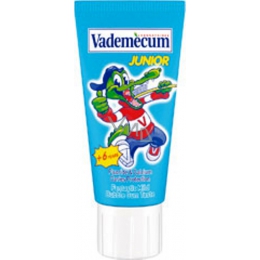 Zubní pasta vyvinutá speciálně pro potřeby prvních stálých zubů (pro děti starší 6ti let). Zubní pasta Vademecum Junior s nízkým obsahem fluoridu je speciálně vyvinutá pro děti. Díky obsahu kalcia a fluoridu posiluje sklovinu a aktivně chrání mléčné zuby před zubním kazem.
