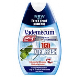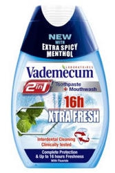 Toužíte po dokonalém úsměvu? K tomu jsou potřeba zářivě bílé zuby a svěží dech. Odborníci z laboratoří Vademecum společnosti Henkel stále zdokonalují výrobky ústní hygieny, které vám cestu k sebevědomému úsměvu usnadní. Nyní představují dvě novinky. Obsahuje dostatečnou dávku mentolu. Díky tomu bude váš dech svěží až 16 hodin. Vademecum 2v1 16h Xtra Fresh nabízí velmi účinnou ochranu před bakteriemi a obsahuje vše potřebné k vytvoření sebevědomého úsměvu, který vydrží skutečně dlouho.