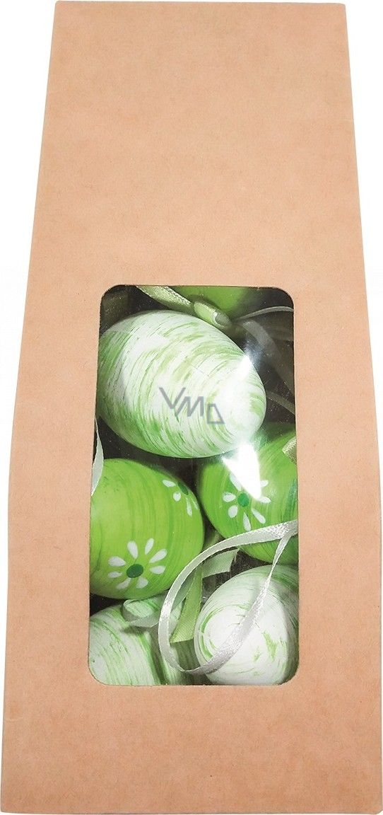 Vajíčka plastová na zavěšení zelená 6 cm 6 kusů v papírovém sáčku
