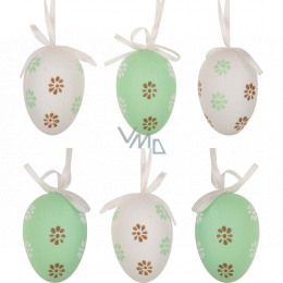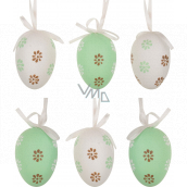 Vajíčka plastová na zavěšení zeleno-bílá s kytičkami 6 cm 6 kusů v sáčku