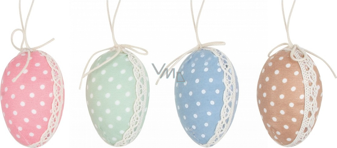 Vajíčko na zavěšení s krajkou a puntíky 6 cm 1 kus