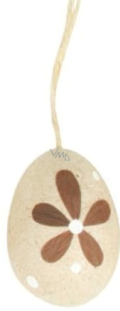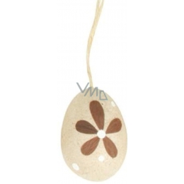 Vajíčko přírodní na zavěšení hnědý dekor puntík a hnědá kytka 6 cm