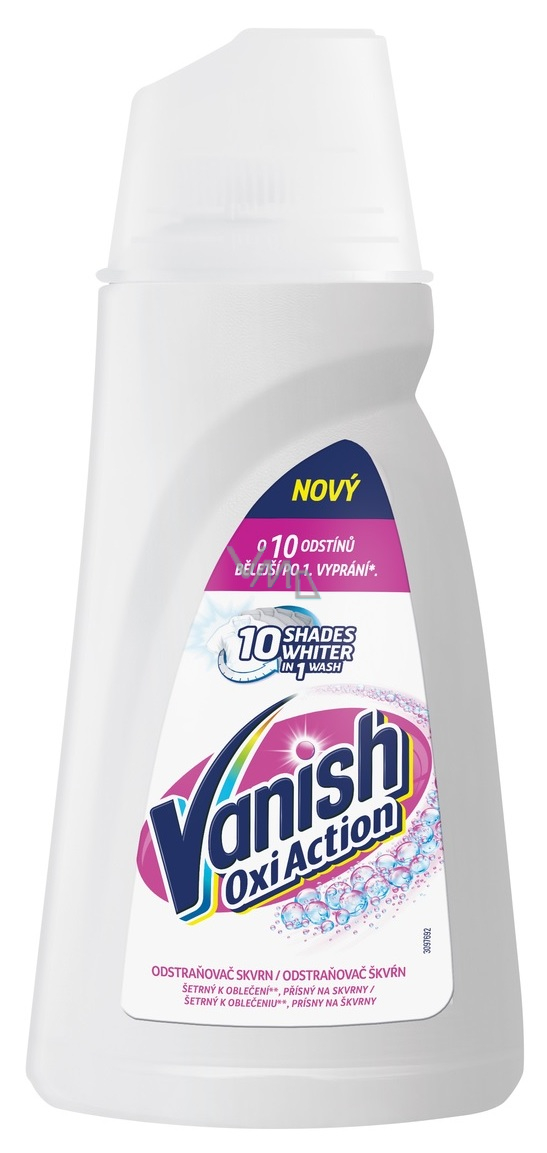 Vanish Oxi Action płyn do usuwania plam na białe tkaniny to skuteczny sposób na utrzymanie bieli białych materiałów bez skazy, a jednocześnie usunie plamy już po pierwszym praniu
