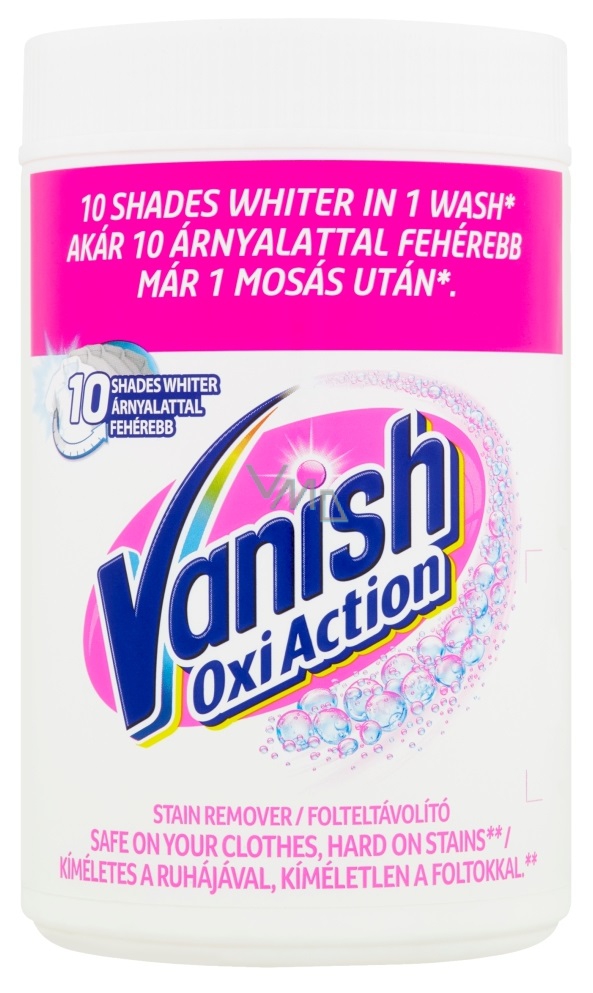 Vanish Oxi Action prášek na bělení a odstranění skvrn je speciláně navržený tak, že vytváří molekuly aktivního kyslíku aby vaše bílé prádlo bylo bělejší a navíc efektivně odstraňovalo skvrny. Vhodný pro běžné každodenní prádlo jako je např. bavlna.