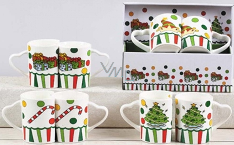 Świąteczny ceramiczny kubek design mix Dary, Choinka, Czapeczka, Christmas Candy 340 ml 2 sztuki w pudełku