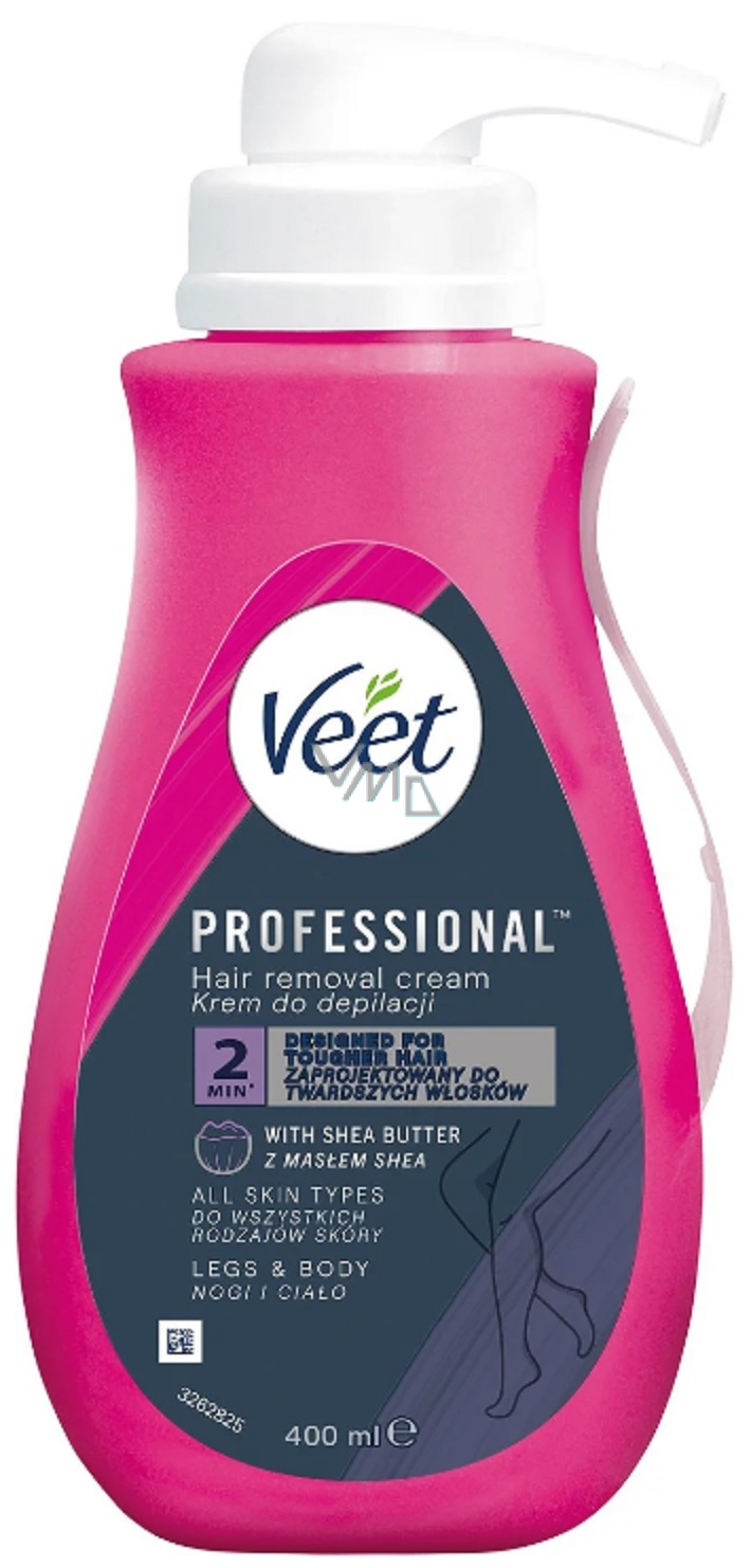Ciesz się pięknie gładką skórą dzięki kremowi do depilacji Veet Professional z masłem shea. Krem zapewnia skórze nawilżenie i pielęgnuje ją. Nadaje się do depilacji nóg i okolic bikini.