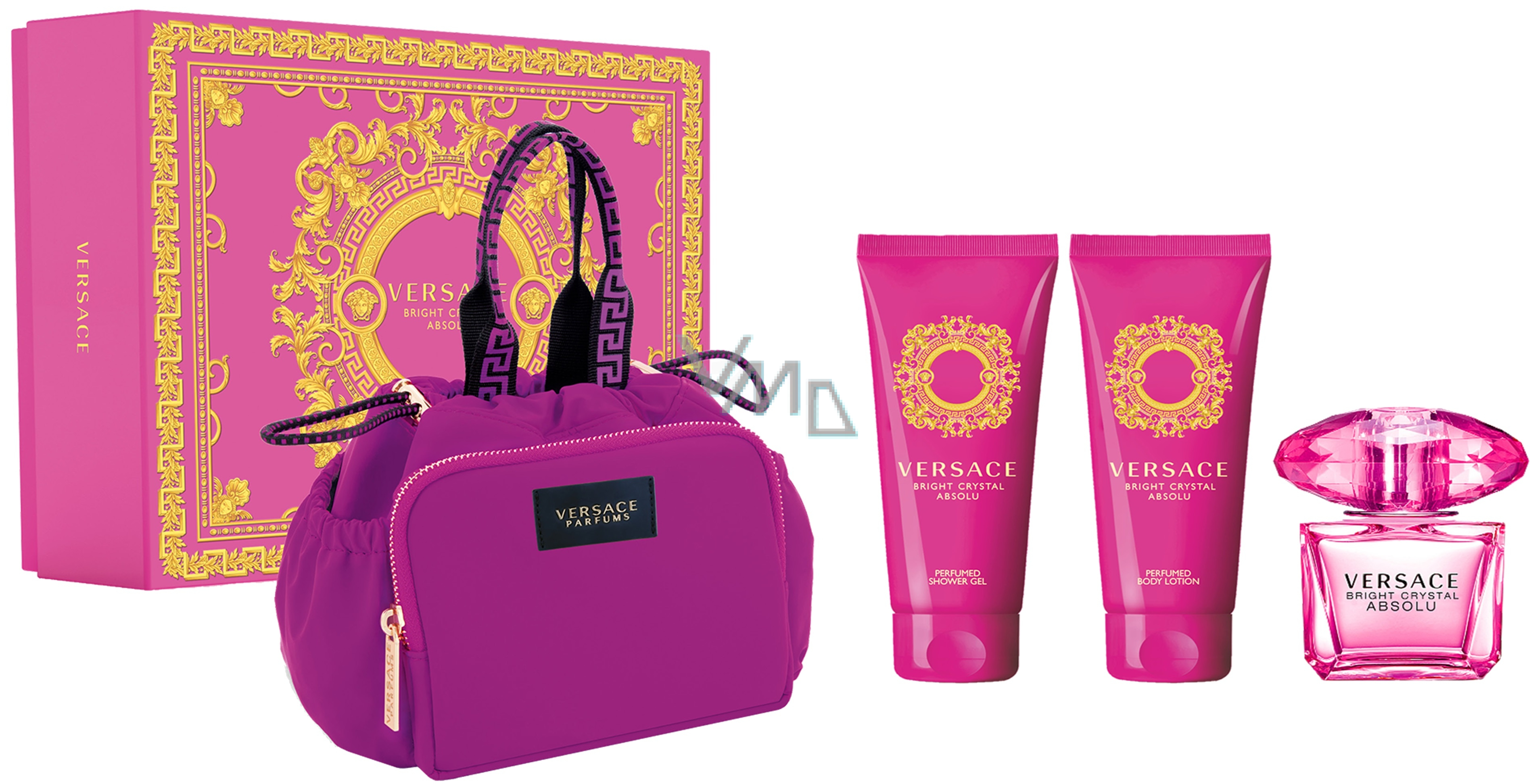 Versace Bright Crystal Absolu parfémovaná voda 90 ml + tělové mléko 100 ml + sprchový gel 100 ml + kabelka, dárková sada pro ženy