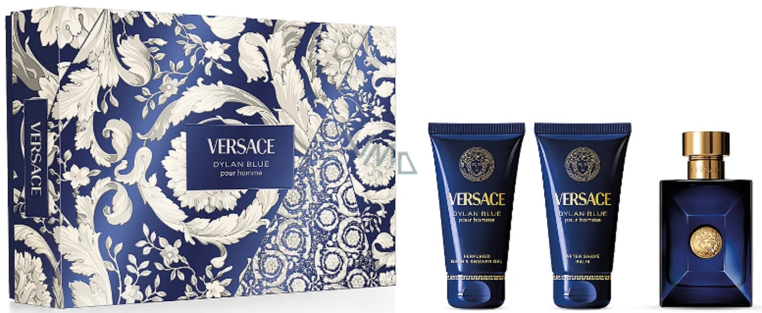 Versace Dylan Blue Pour Homme toaletní voda 50 ml + balzám po holení 50 ml + sprchový gel 50 ml, dárková sada pro muže