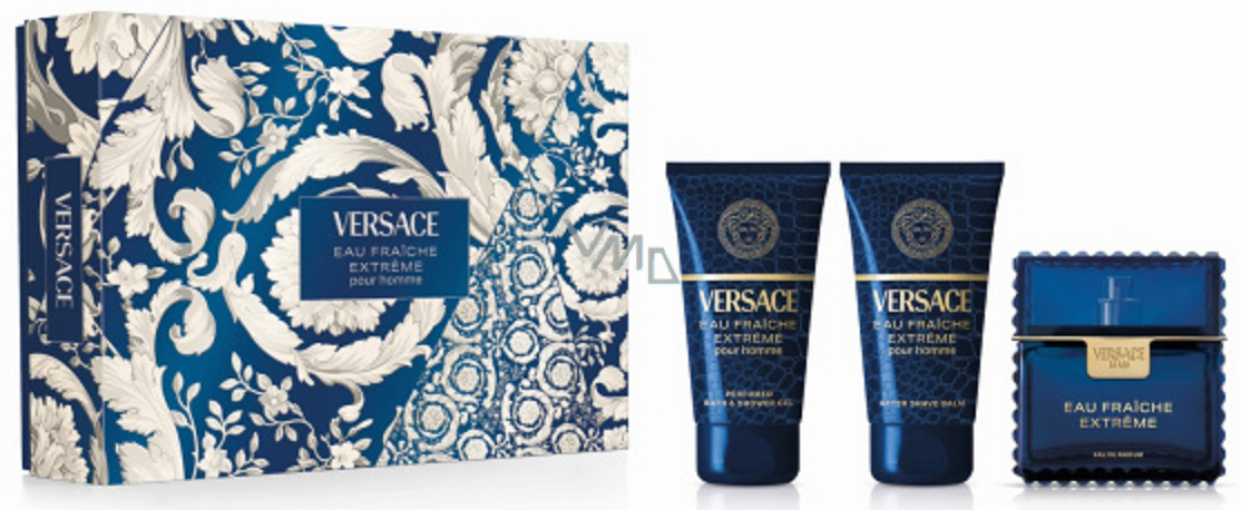 Versace Eau Fraiche Extreme Pour Homme parfémovaná voda 50 ml + balzám po holení 50 ml + sprchový gel 50 ml, dárková sada pro muže