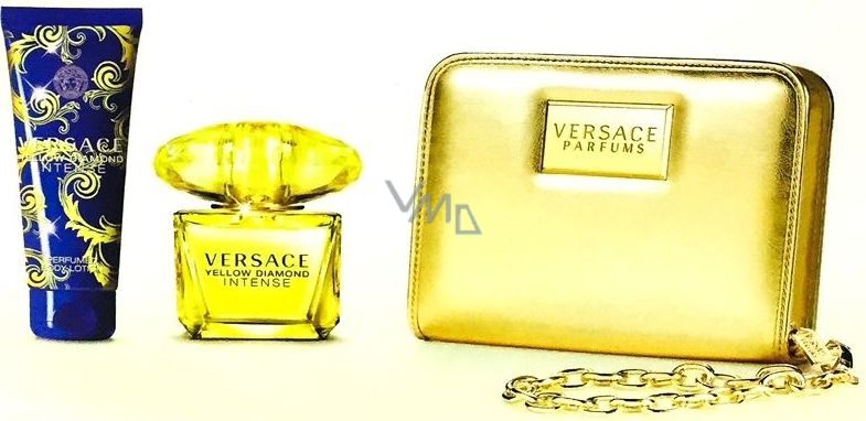 Versace Yellow Diamond Intense parfémovaná voda 90 ml + tělové mléko 100 ml + zlatá kabelka, dárková sada