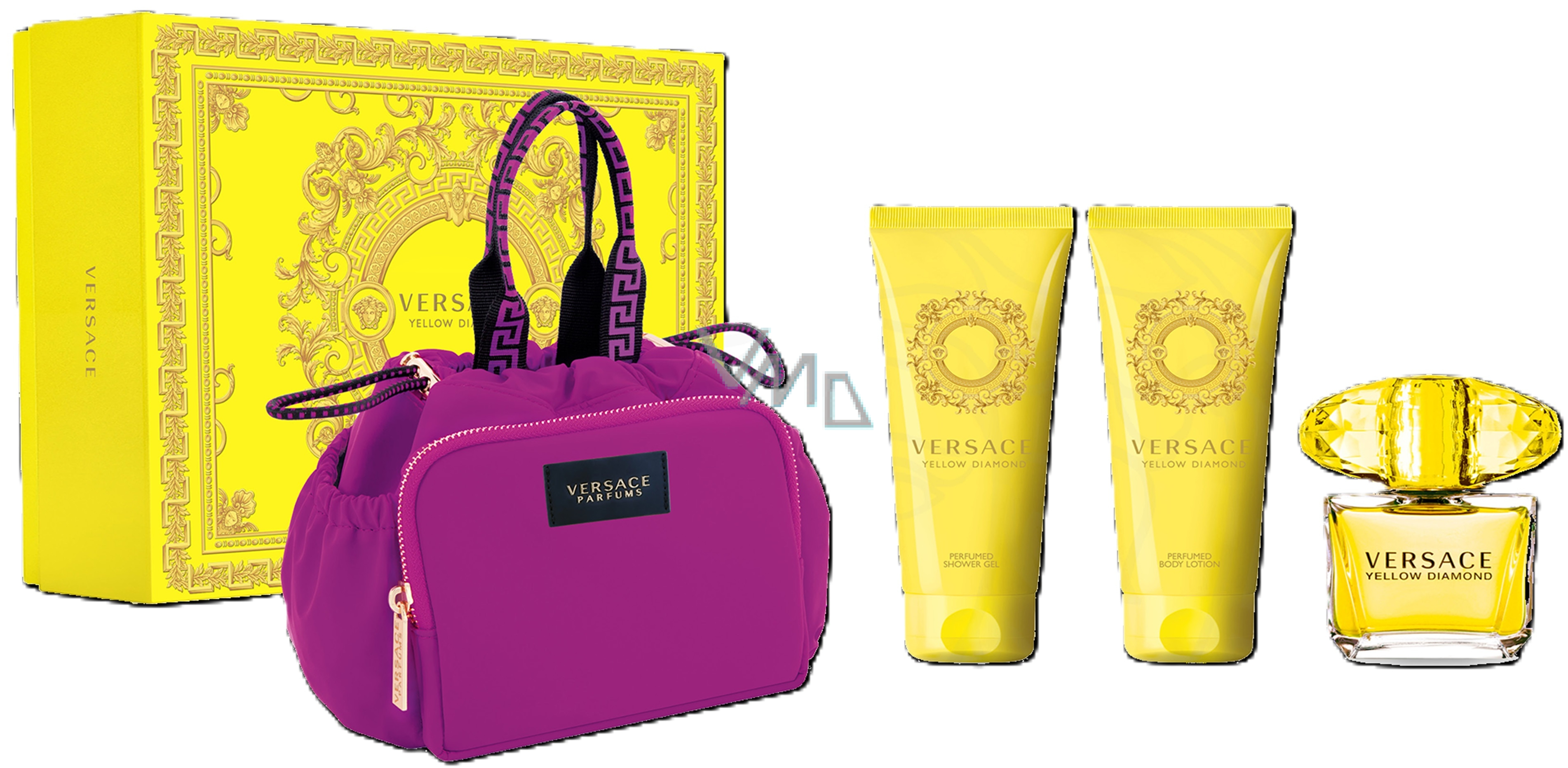 Versace Yellow Diamond toaletní voda 90 ml + sprchový gel 100 ml + tělové mléko 100 ml + kabelka, dárková sada pro ženy