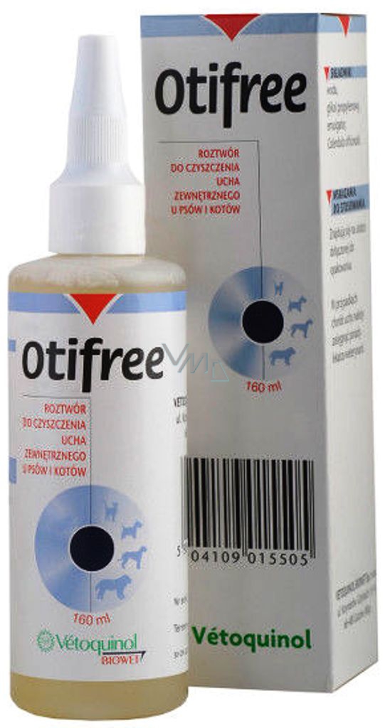 Vétoquinol Otifree gtt přípravek na čištění uší psů a koček intenzivně rozpouštět ušní maz a nečistoty 160 ml