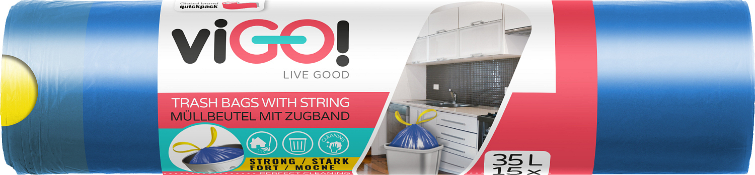 Quickpack viGO worki na śmieci, mocne 13 µ, rozmiar worka 60 × 70 cm, objętość 60 l, pakowane 10 sztuk. Wysokiej jakości worki na śmieci do przechowywania odpadów z domu lub ogrodu.